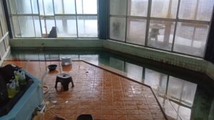 お湯は評判通り、油好きにはたまらない臭いと浴感です。現在はマニアックな温泉地ですが、大正8年に油田採掘の為に発見された温泉として、名を馳せたそうです。かつて、団体客が押し寄せた旅館は広々としていますが、この日の泊り客は数組、夜の旅館内は寂しい雰囲気になります。古い温泉旅館の多くは、おそらく7割は未使用の部屋、物置と化した大広間(宴会場)が残っているのです。