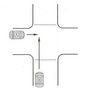 信号や一時停止の標識がない交差点で、B車側に停止線がある場合の過失割合は? 両者の道幅は同じとします。「判例タイムス」での基準は、①~③のどれでしょうか? ① A 20 : B 80