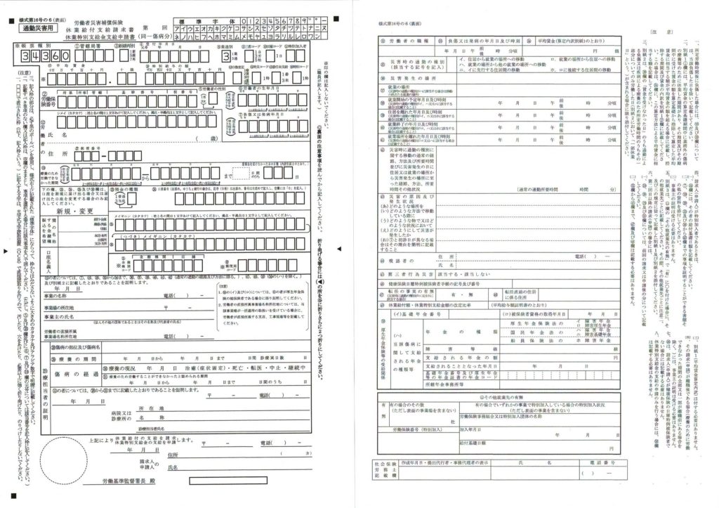 ① 休業給付請求書(左:表面 右:裏面) (16-6) (8号)