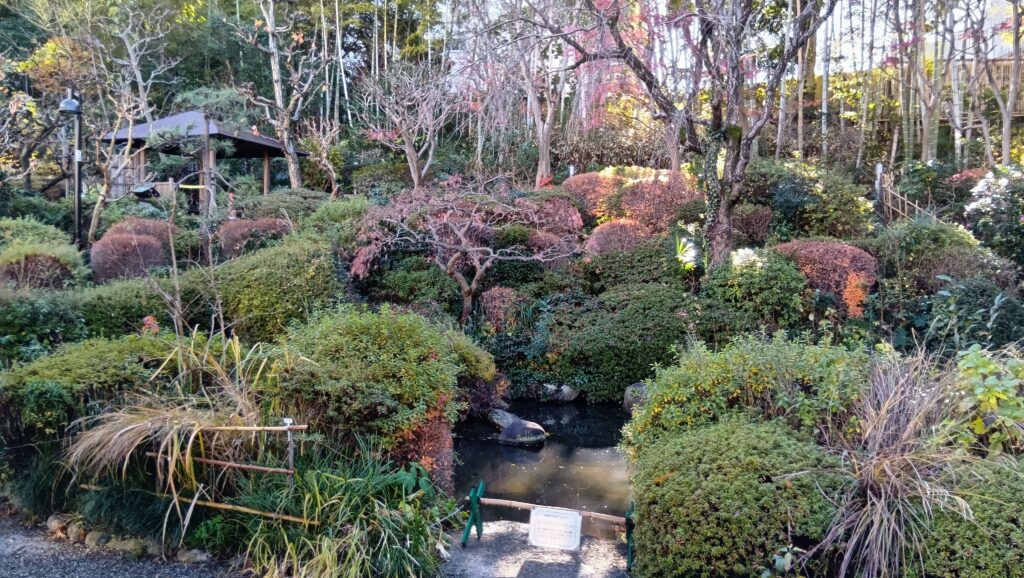 この整備された庭園は「薬師の泉跡」と呼ぶそうです。斜面から湧き出た清水が池となっています。冬枯れの景観ですが、樹木草花から四季を楽しめます。都会にこじんまりとしたオアシスです。