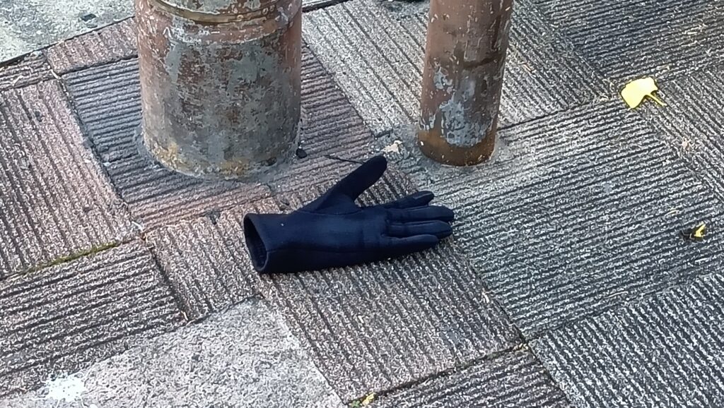この冬、各地でみられる「さびしい手袋」・・・両方を落とすことは稀で、ほとんど片手だけがポツンとあります。それが、なおさら寂しさを掻き立てると思います。子供のかわいい手袋ですと、もはや涙がでてきます。